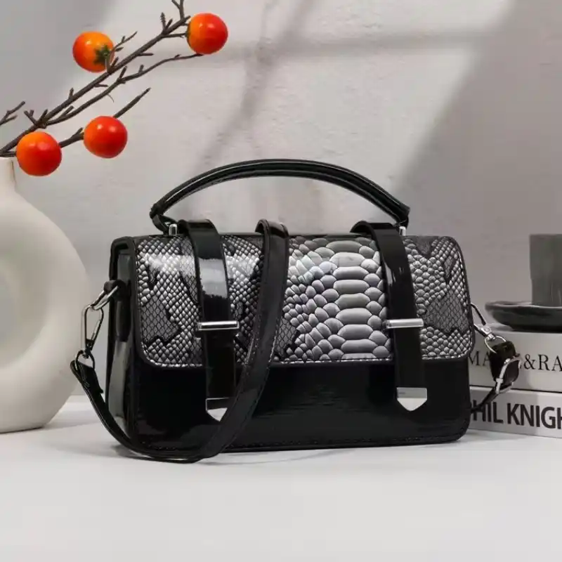 Snake Pattern Double Belt Fashionable Bag